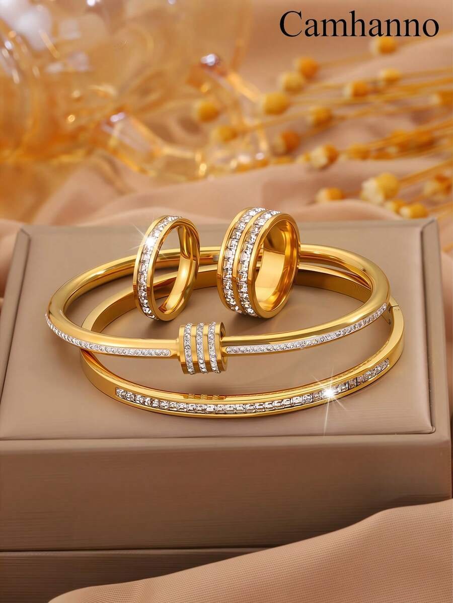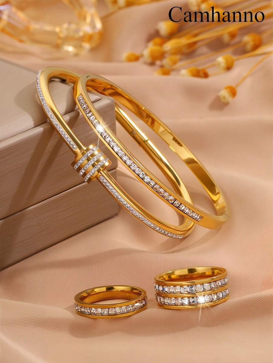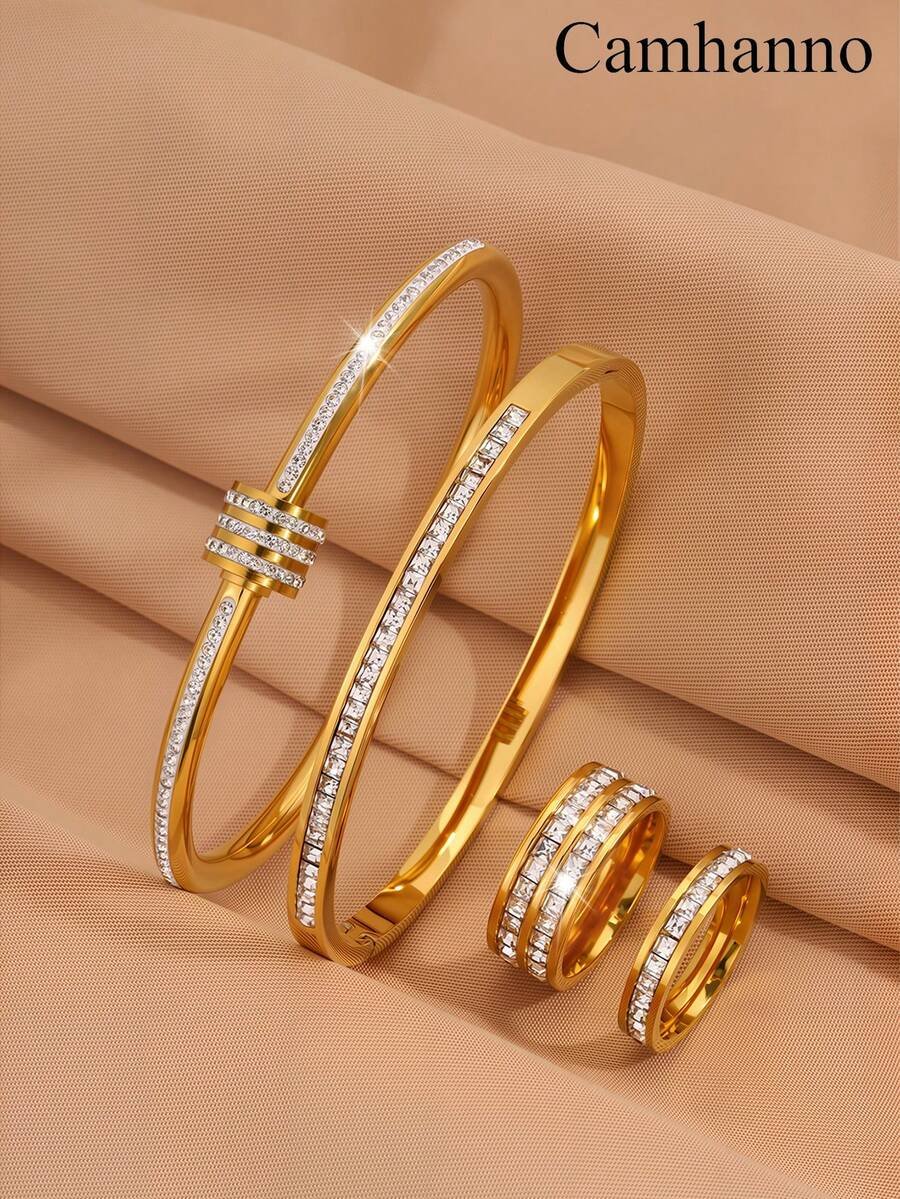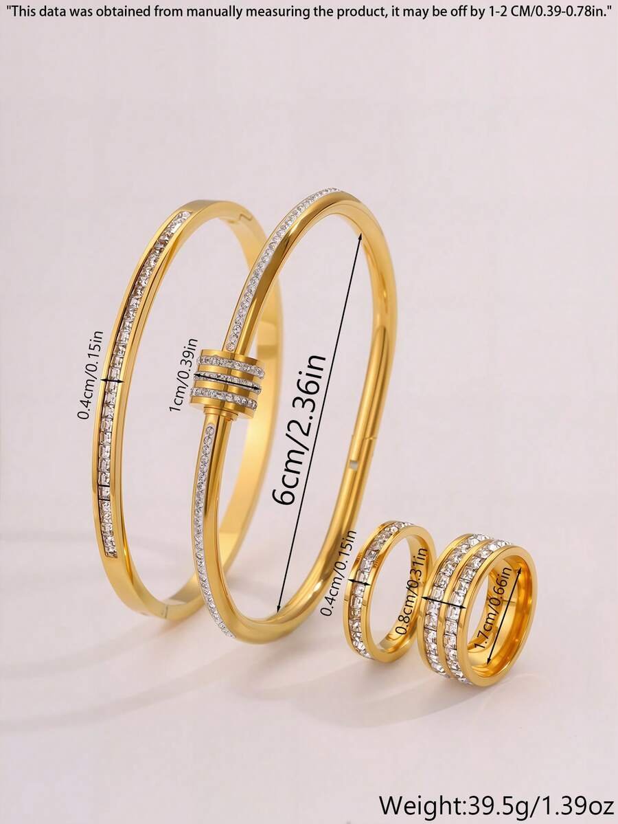 طقم أساور وخواتم من الذهب مكون من 4 قطع