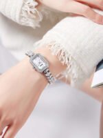 اسمتعي بأناقة لا تضاهى مع ساعة يد نسائية، تتميز بأنها مقاومة للماء حتى عمق 30 متر، مما يسمح باستخدامها خلال التنقلات اليومية دون القلق من التعرض للرذاذ أو المطر. كما أنها مزينة بـ حجر الراين اللامع الذي يضفي لمسة براقة وفاخرة، مما يجعل اليدين تتألقان ويزيد من أناقة الإطلالة.