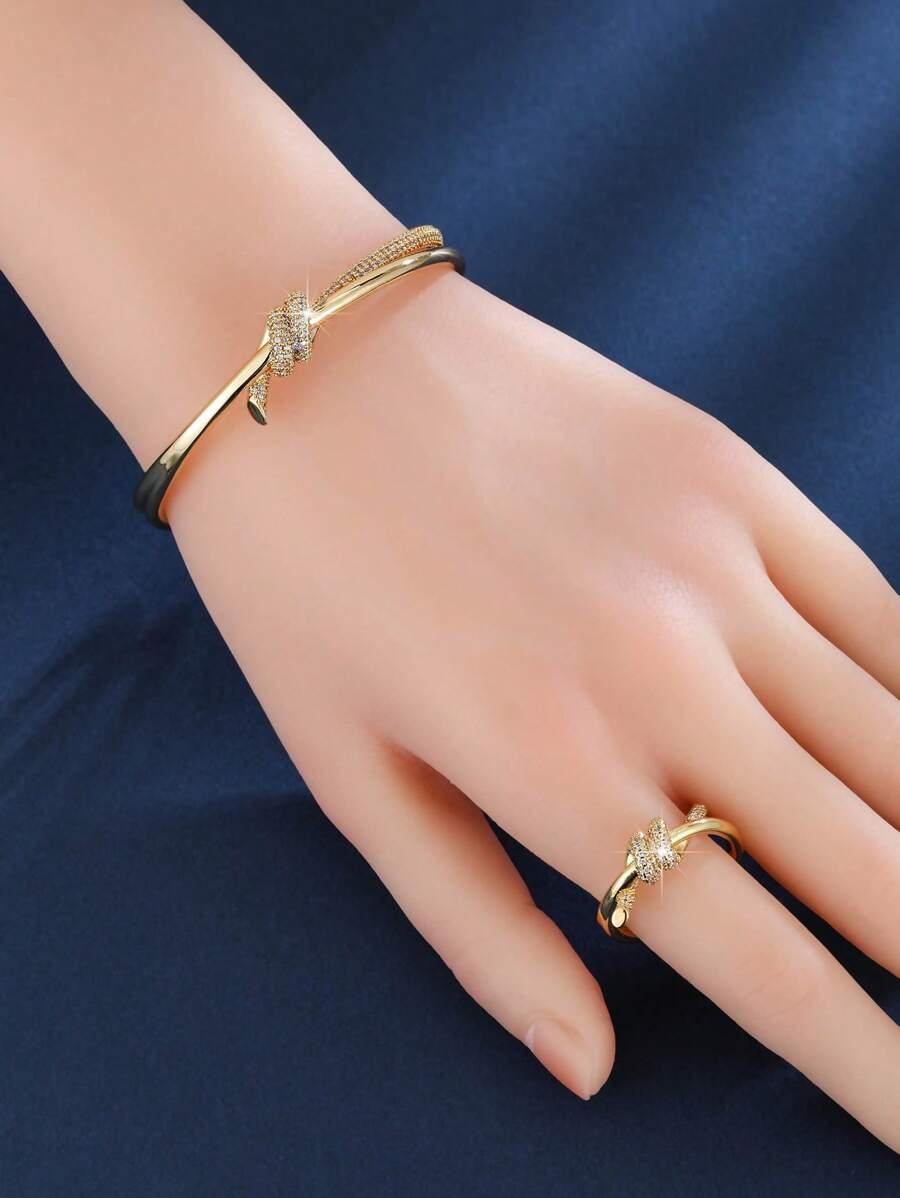 الرئيسية اكسسوارات اسورة وخاتم أنيق ذهبي اللون