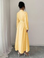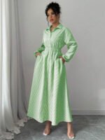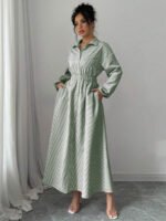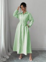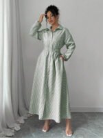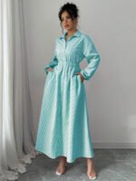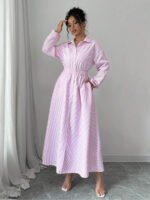 تمتعي بالراحة والأناقة مع فستان بنمط قميص، مصنوع من خامة خفيفة الوزن تمنحك ارتداءً مريحًا طوال اليوم دون أي إحساس بالضيق. يمكن ارتداؤه في مختلف المناسبات اليومية، سواء في العمل أو أثناء النزهات أو الاجتماعات غير الرسمية.