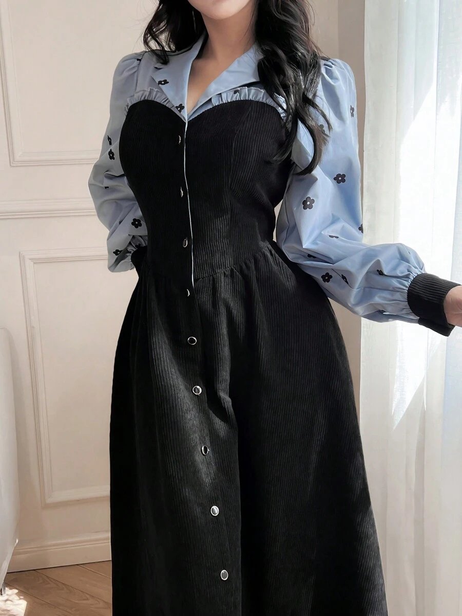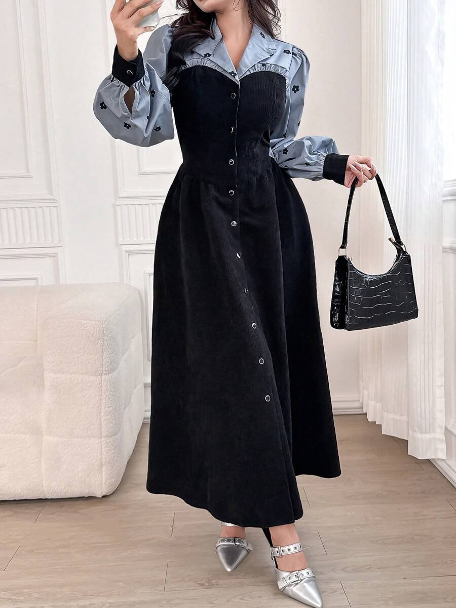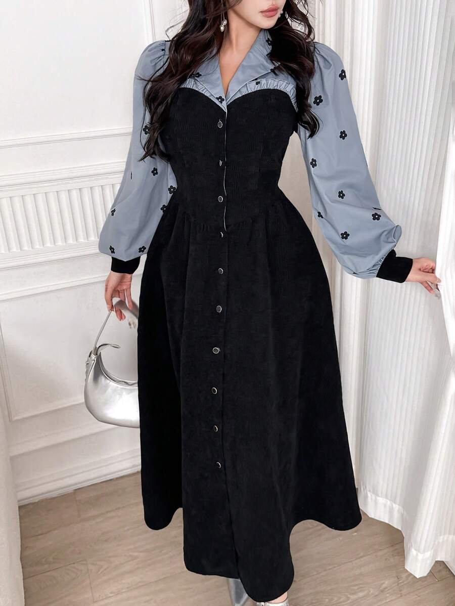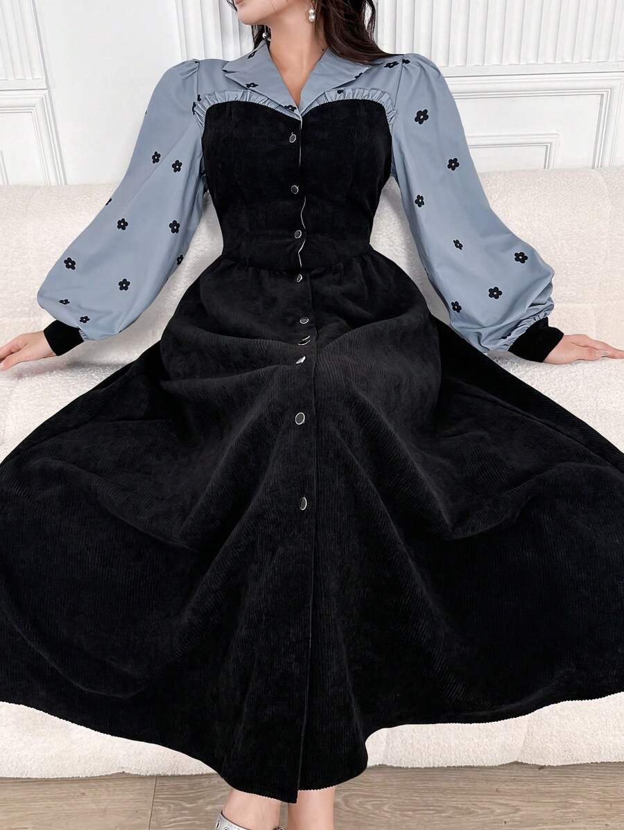 فستان نسائي أنيق بطبعات زهور وأكمام منتفخة