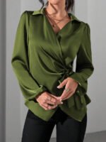 - اللمسة النهائية اللامعة لقماش الستان تمنح القميص فخامة لا مثيل لها.